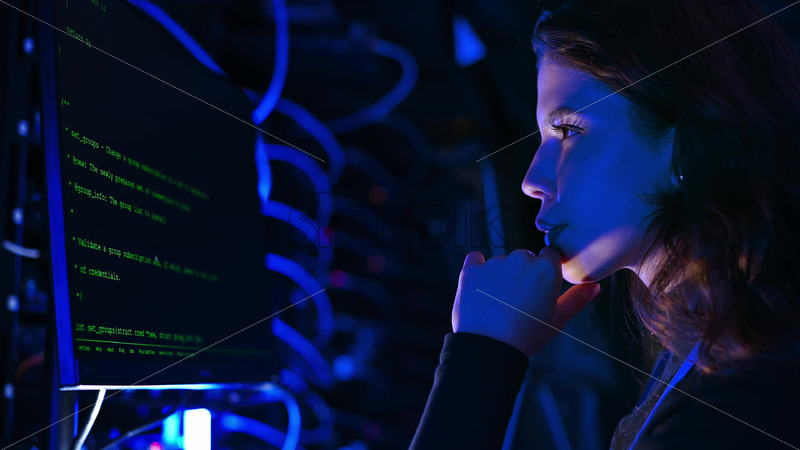 Royalty free stock video Woman programming in a server room Royalty Free Stock Video Footage