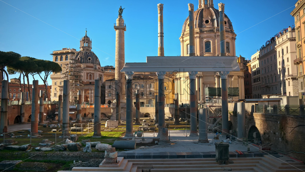 Ruins of the Roman Forum at sunset in Rome, Italy Royalty Free Stock Video Footage