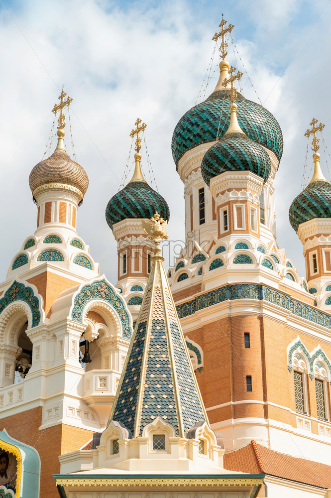 Russian Orthodox Cathedral exterior in Nice, France. Vertical shot
