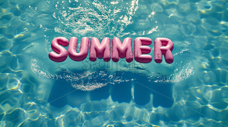 Home » Shop » Uncategorised » Sale banner with pink floating word SUMMER on swimming pool