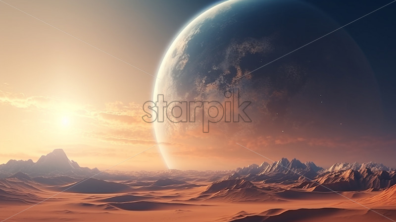 Home » Shop » Uncategorised » Sand dunes on the background of a planet at night