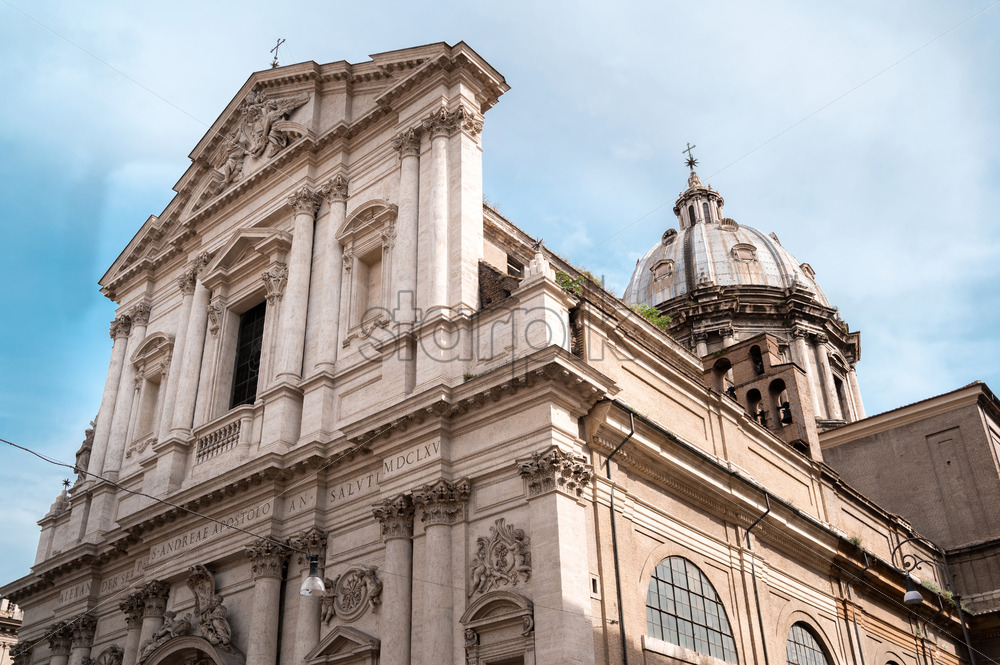 Sant Andrea della Valle facade and entrance in Rome, Italy