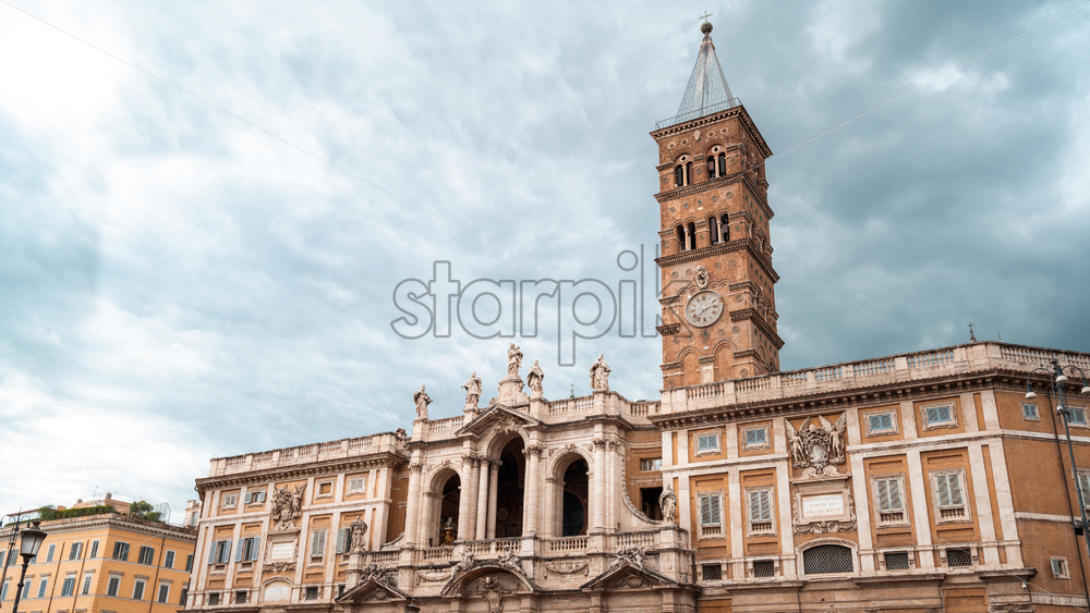 Santa Maria Maggiore with tower, cloudy sky on the background in Rome, Italy