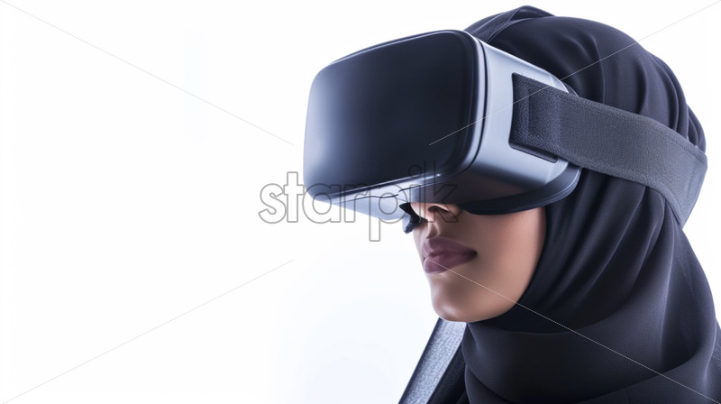 Business conference in VR in an office. A black man and woman using VR glasses and controllers, gadgets on the table. Slow motion, virtual reality Royalty Free Stock Video Footage
