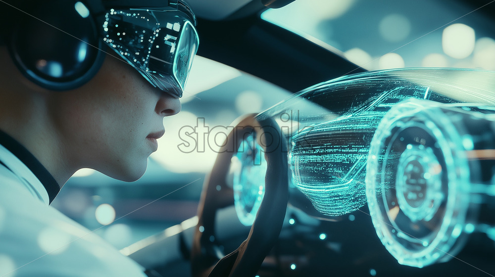 Home » Shop » AI Illustration » scientist designing a futuristic vehicle in the quantum metaverse