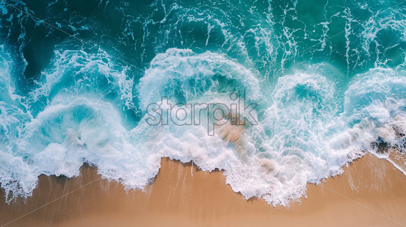 Aerial drone view of Antibes sandy beach filled with sunbathers and swimmers, with seafront apartment buildings and green hills in the background Royalty Free Stock Video Footage