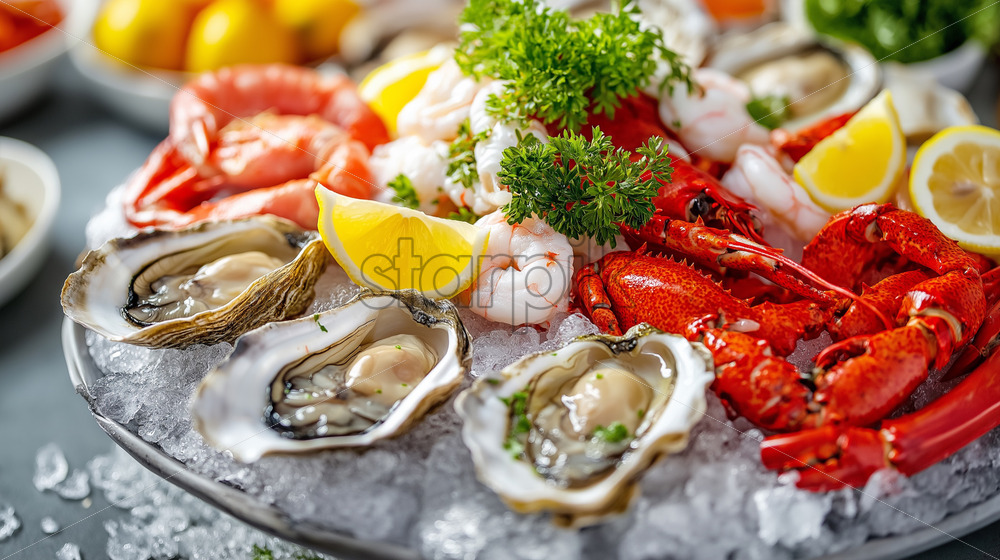 Home » Shop » AI Illustration » seafood plate with oysters delicacy