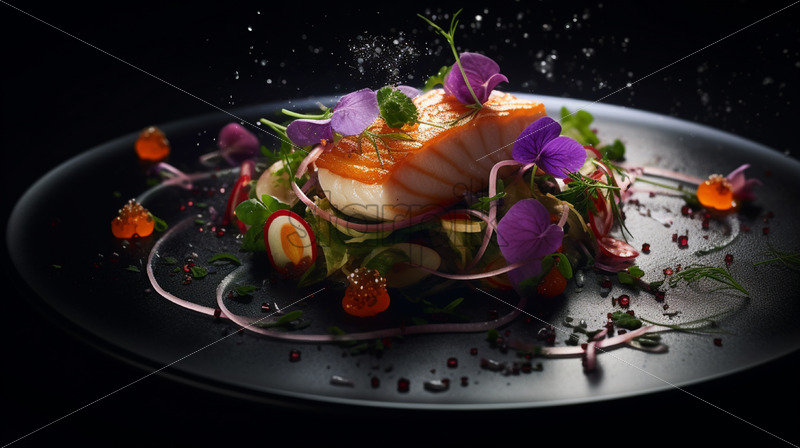 Home » Shop » Uncategorised » Seafood with vegetables on a black plate
