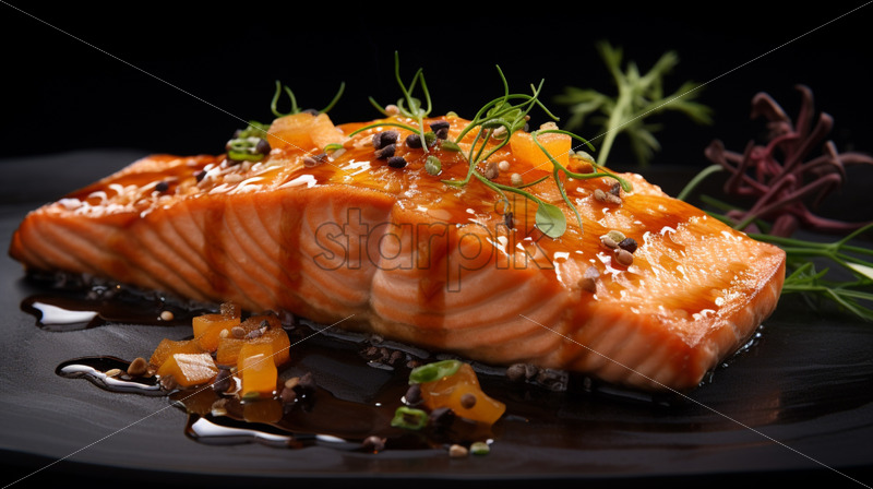 Serving in the restaurant, miso glazed salmon