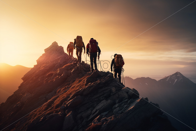 Several climbers climb a mountain