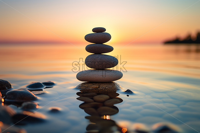 Several stones arranged one above the other on the shore of a lake