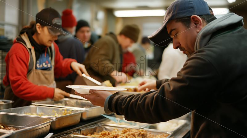 Volunteers extend warmth and support by serving meals and assisting individuals facing homelessness at a local shelter.