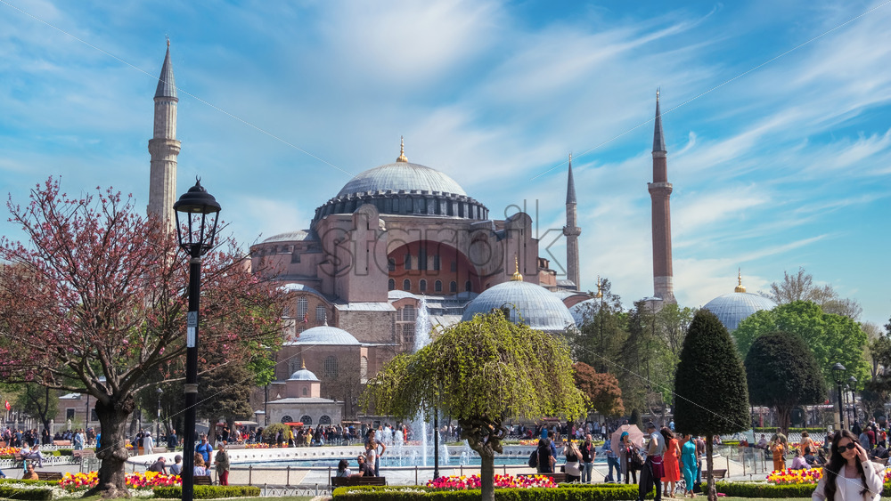 Daylight landscape of the famous turkish landmark Blue Mosque in Istanbul