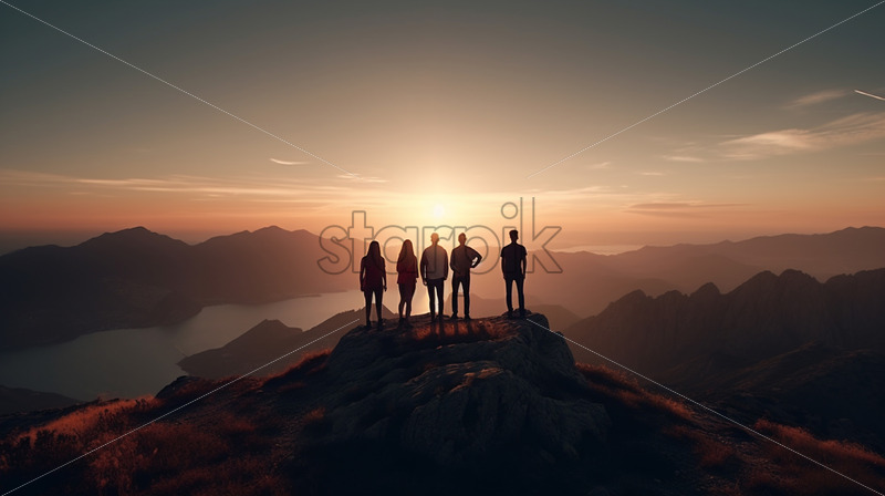 A silhouette against a sunset backdrop, capturing a hiker’s triumph at a mountain peak.
