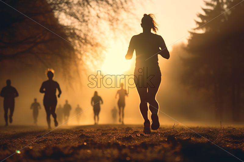Silhouettes of athletes running in the park