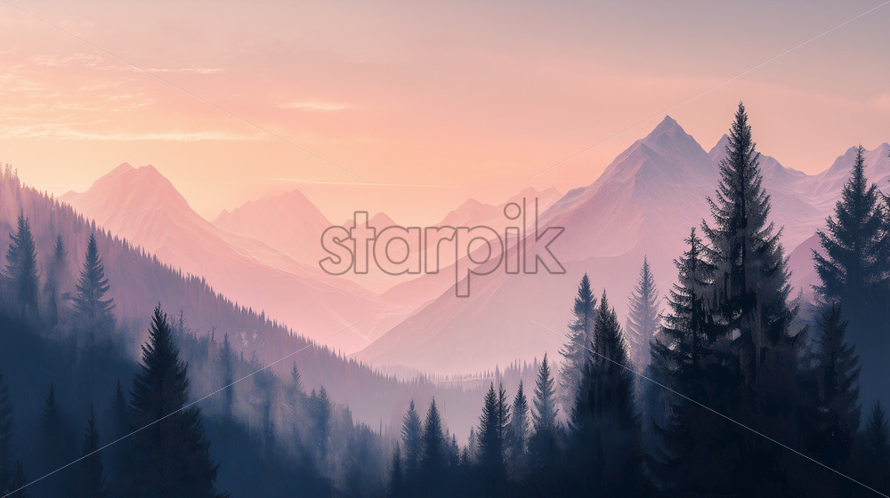 Simple, elegant illustrations of landscapes , clean lines and soft pastel colors