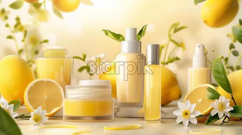 Skincare products, inspired by lemon on yellow background