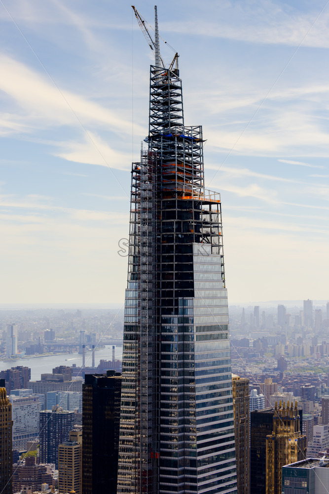 View of a skyscraper under construction in New York downtown from a view point, USA