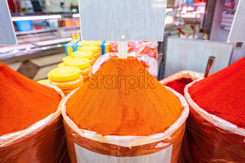 Smoked paprika being sold at the market. Vibrant looking colors Royalty Free Stock photo