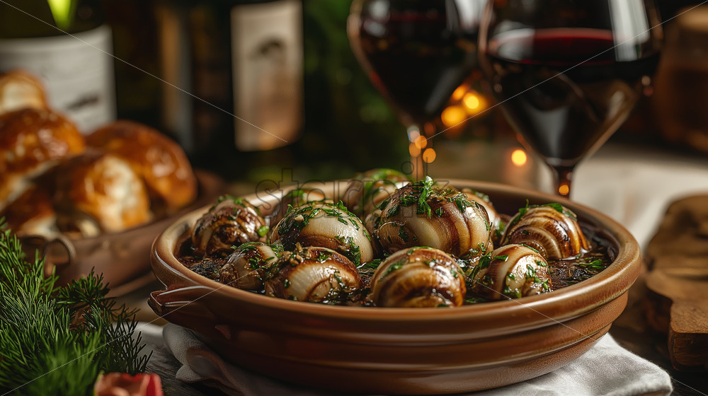 Garlic prawns in a rich sauce topped with herbs on a white plate Royalty Free Stock Video Footage