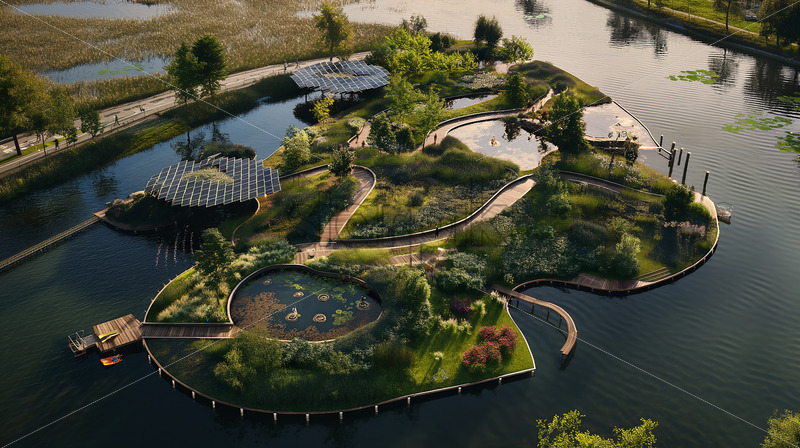 Relax in our floating park powered by solar energy, offering green spaces and recreational areas to reduce carbon footprint.