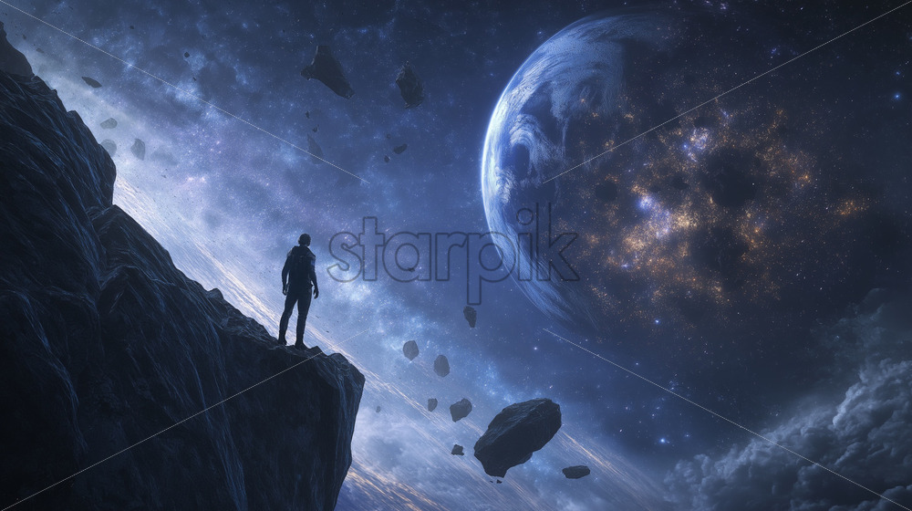 A close-up photo of a hiker finding solitude and peace amidst towering mountains.