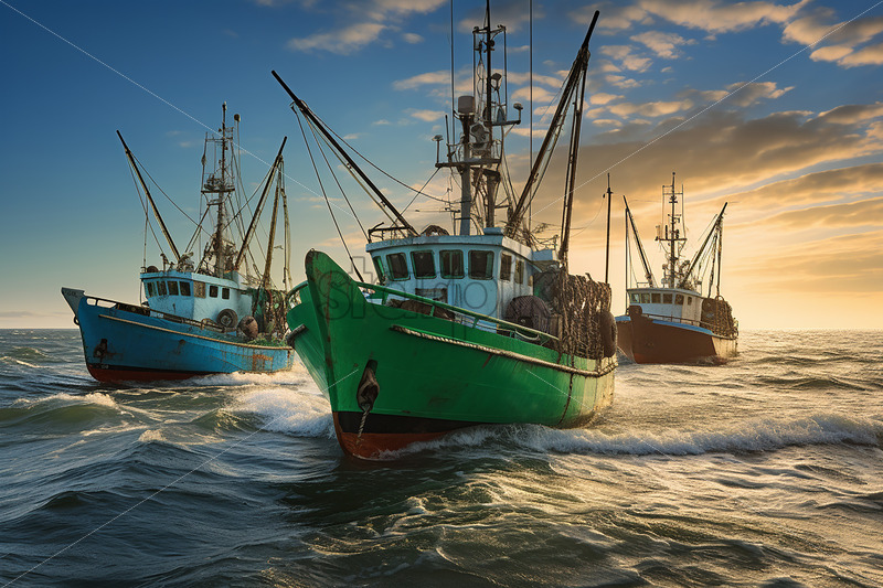 Some fishing boats in an ocean