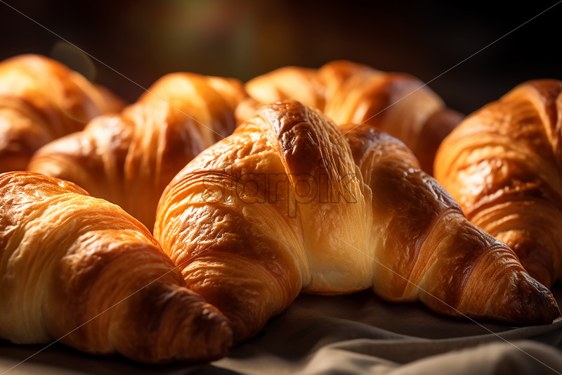 Some ready croissants taken out of the oven