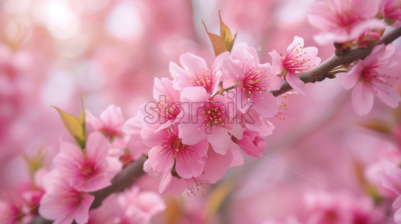 Spring cherry flowers background, blossom season card