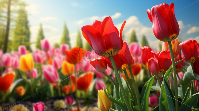 Home » Shop » Uncategorised » Spring landscape field with colorful tulips