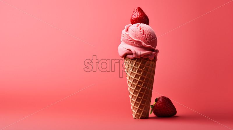 Woman hand holding ice cream with waffle. Lake Como and mountains on background at sunset. Lenno, Italy Royalty Free Stock photo