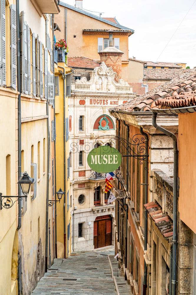 GRASSE, FRANCE – SEPTEMBER 3, 2021: Street scape of the town. Traditional buildings, narrow street