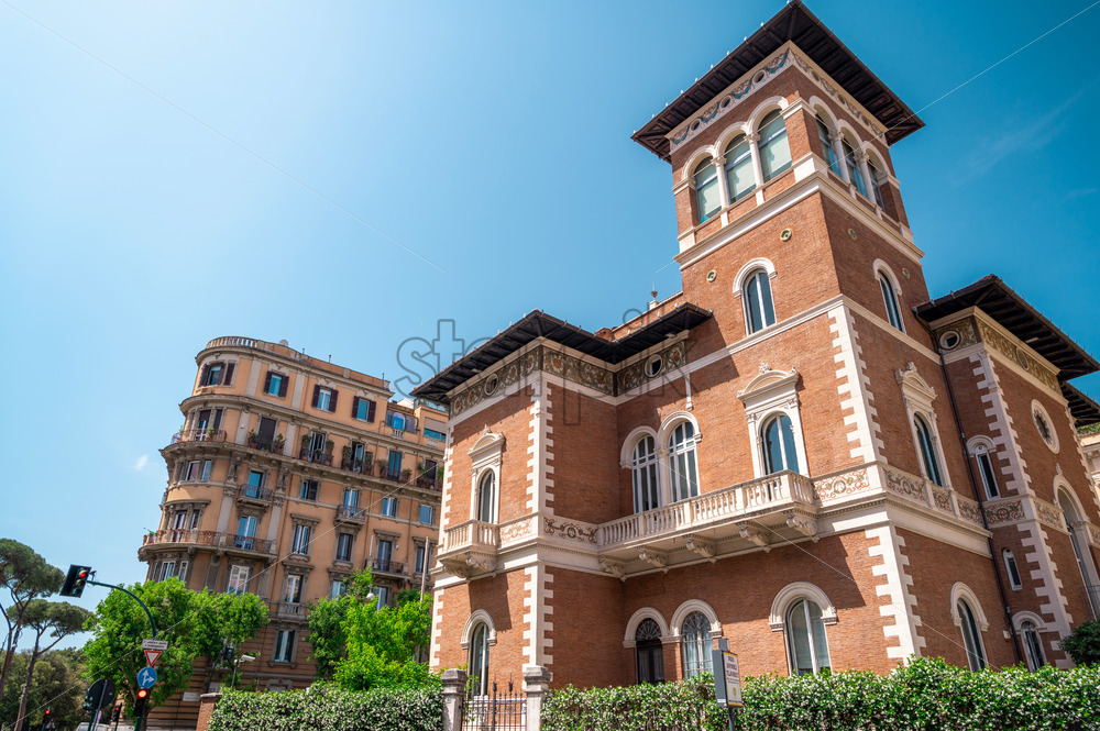 Street scape of the centre of Rome, Italy. Buildings made in national and classic styles