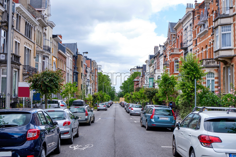 City buildings facade at Grand Place in a sunny day. Bright clear sky on background. Negative copy space, place for text. Brussels, Belgium Royalty Free Stock photo