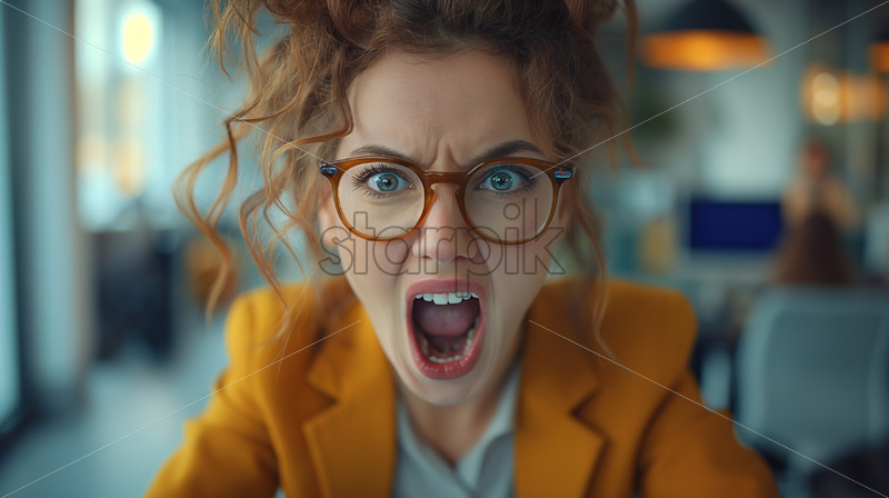 Stressed and angry woman in the office