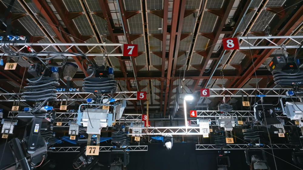 Studio lights equipment on the ceiling of a TV set Royalty Free Stock Video Footage Royalty Free Stock Video Footage