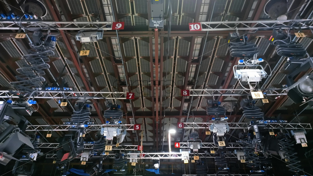 Studio lights equipment on the ceiling of a TV set Royalty Free Stock Video Footage Royalty Free Stock Video Footage