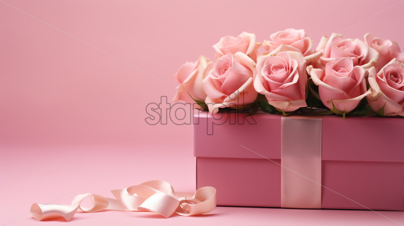 Stylish pink gift box and pink roses on isolated pink background