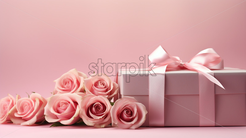 Stylish pink gift box and pink roses on isolated pink background