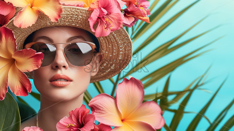 Woman wearing yellow swimming suit and a rounded yellow sunglasses