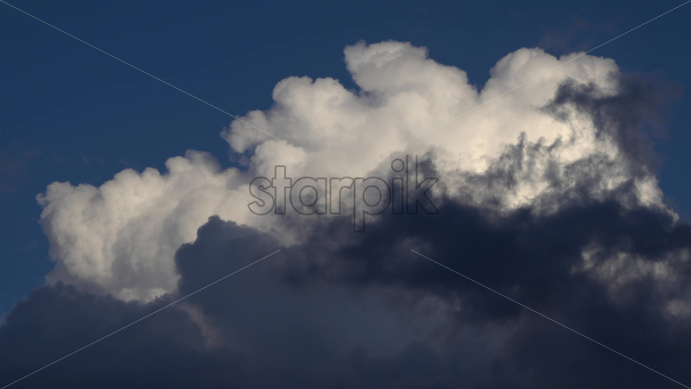 Home » Shop » 1 Video » Video – Sunlit white cloud rising above a layer of darker clouds against a deep blue sky