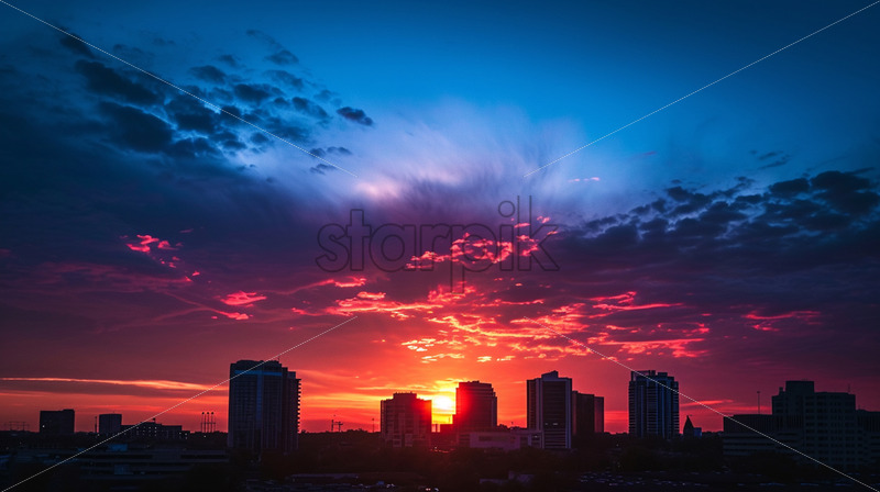 Sunset view over the city skyline reflecting vibrant colors during evening hours Royalty Free Stock Video Footage