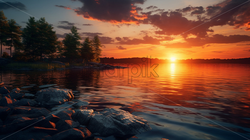 Beautiful sunset view in Valea Morilor park in Chisinau, Moldova. Waterfall stairs
