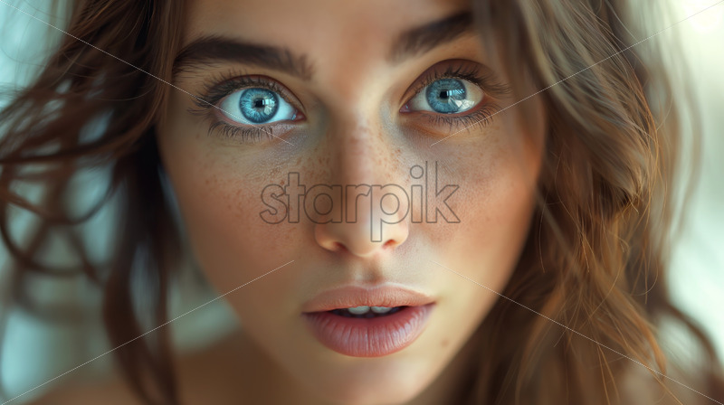 Generative AI the portrait of a 30-year-old woman with an expression of amazement