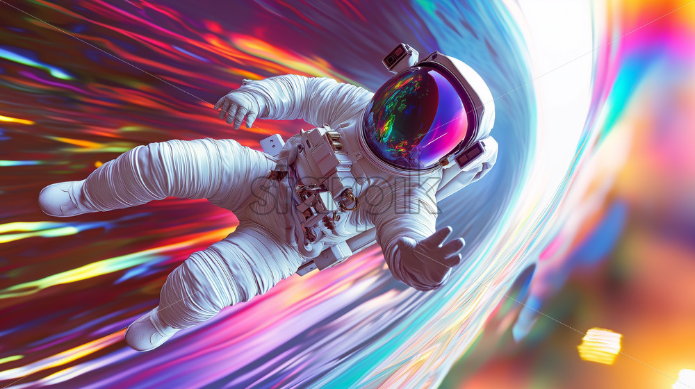 surreal cosmic scene of an astronaut floating near a quantum wormhole