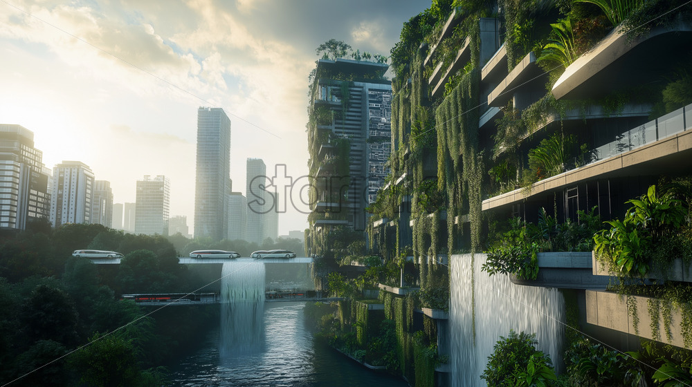 sustainable future city with vertical gardens