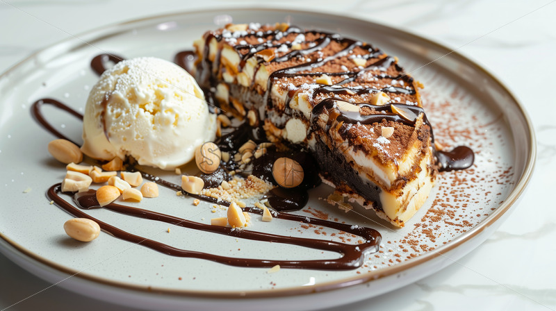 A freshly cooked slice adorned with a generous drizzle of chocolate sauce, crushed peanuts, and sweetened condensed milk.