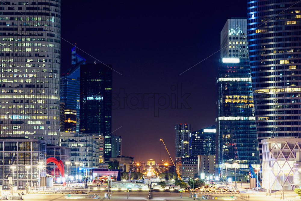 View of the Walkie-Talkie skyscraper standing tall above surrounding architecture in the evening blue hour, London, England Royalty Free Stock Video Footage