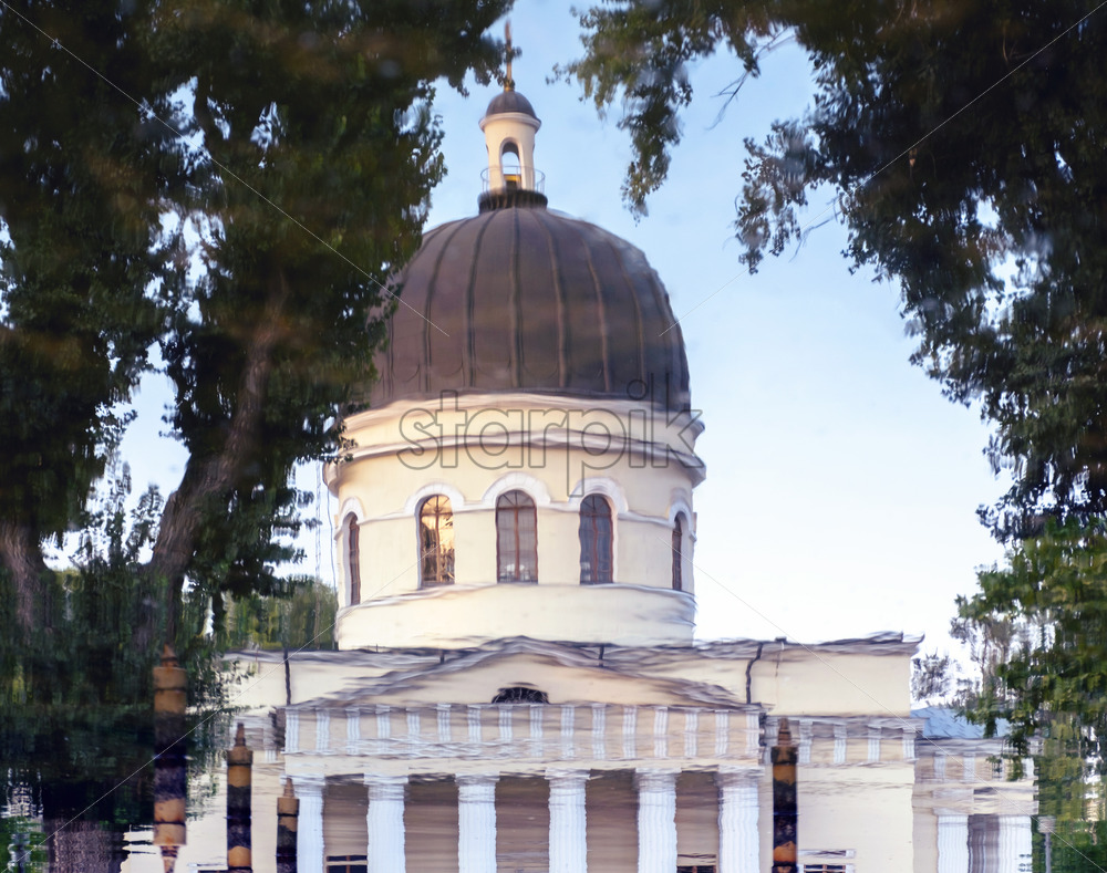 Home » Shop » photo » the cathedral in a sunny day reflected on the water in the pool, Chisinau, Moldova