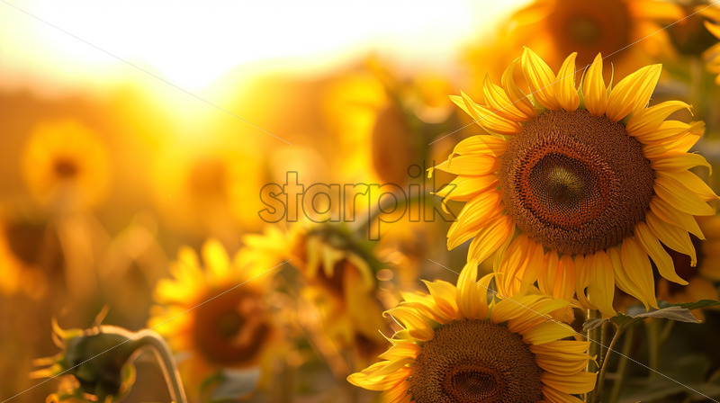 The cheerful faces of sunflowers turning towards the warm sunlight